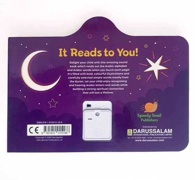 Delight your child with this amazing sound book which reads out the Arabic alphabet and Arabic words