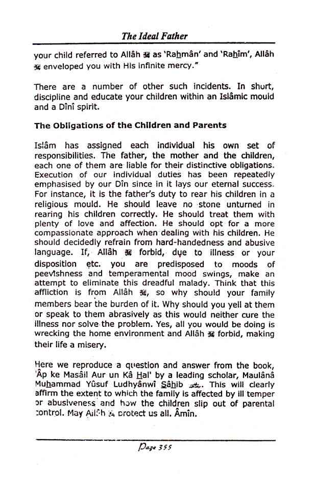 This book explores, among other topics, the duties and responsibilities of the Muslim father. It emphasizes key aspects such as choosing a pious and devoted wife, praying for righteous offspring, and adopting sound principles of child-rearing rooted in Islamic teachings. It outlines essential methods for nurturing a child’s intellectual growth and spiritual development, ensuring that Tawheed (the oneness of Allah) is firmly ingrained in their hearts, and that a deep love for Allah and His Messenger (peace be upon him) is cultivated within them.