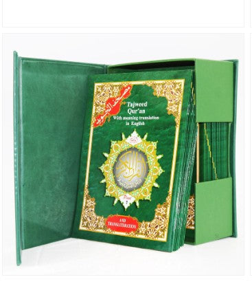 This complete Colour-Coded Tajweed Quran, divided into 30 individual parts, comes in a beautifully designed, elegant presentation box. It includes both English translation and English transliteration, making it accessible to readers of all backgrounds.