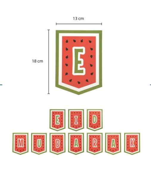 But this set is more than just festive décor—it’s a celebration with a purpose. Inspired by the symbolism of the watermelon as a sign of resilience and solidarity, 20% of the production costs for this set are donated to charities that provide aid to Palestine. By choosing this set, you’re not only creating a joyful atmosphere in your home but also supporting those in need, embodying the true spirit of giving during Eid.