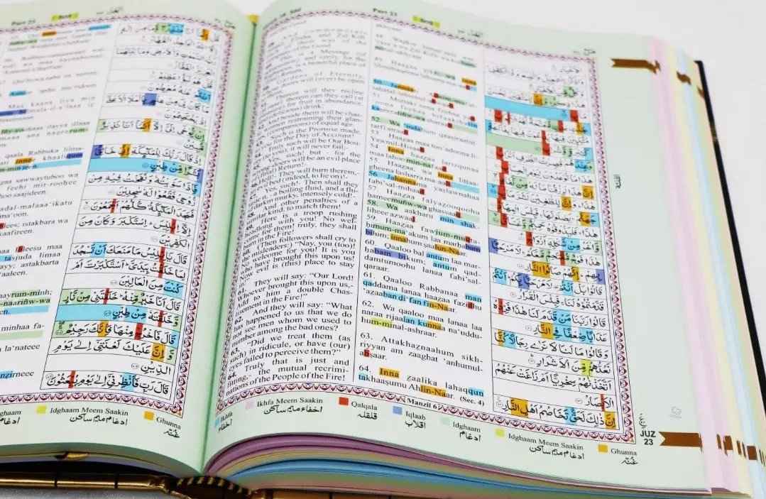 The Holy Qur'an with Colour coded is also known Kaba Cover Qur'an including Roman Scripts with Arabic Text and English Translation