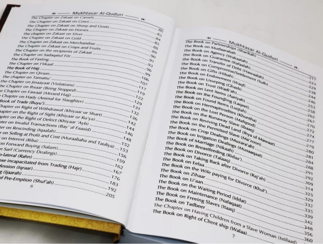 Perhaps the most well-known work of Imām al-Qudūrī, Al-Mukhtaṣar—also referred to simply as al-Kitāb—is a cornerstone text in Ḥanafī jurisprudence. It addresses around 12,500 issues, covering the full range of Fiqh, including not only acts of worship, but also business transactions, personal relations, and judicial and penal matters.
