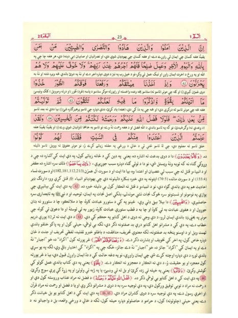 This is a complete single-volume edition of the Qur'an featuring the Pashto translation and Pashto Tafseer (commentary), along with the original Arabic text.