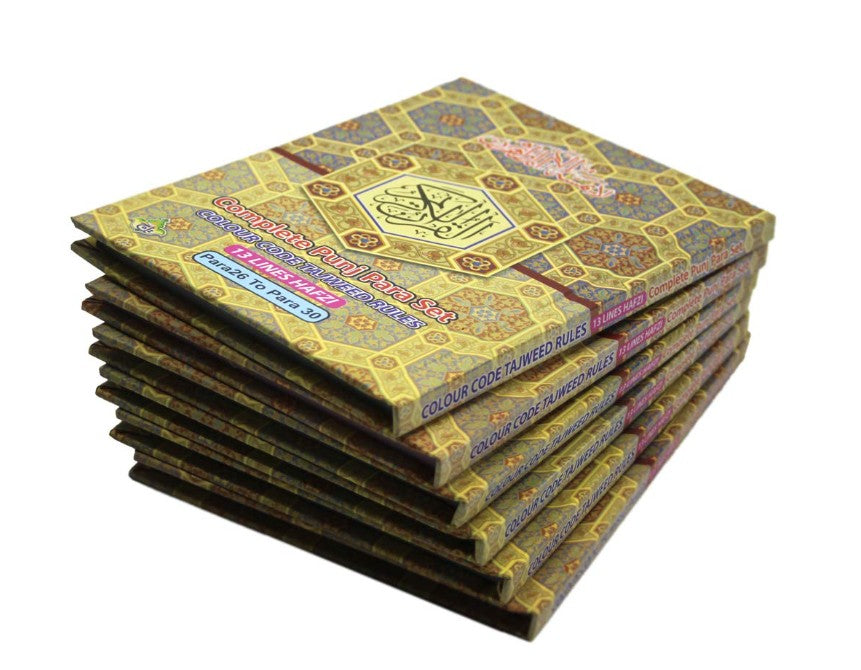 Panj Para Set ( Holy Quran in 6 parts) Hardback- 13 Line Tajweed Colour Coded - A4 Size